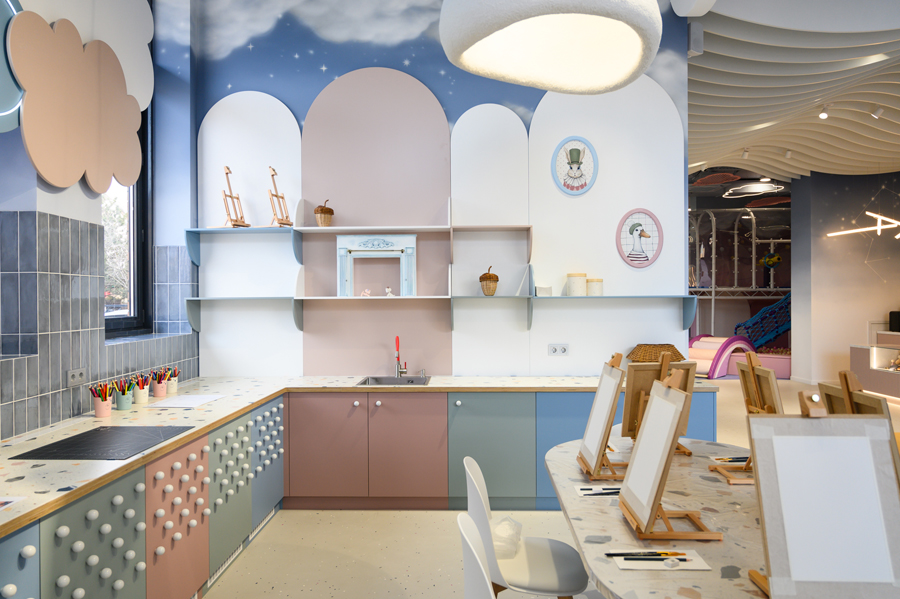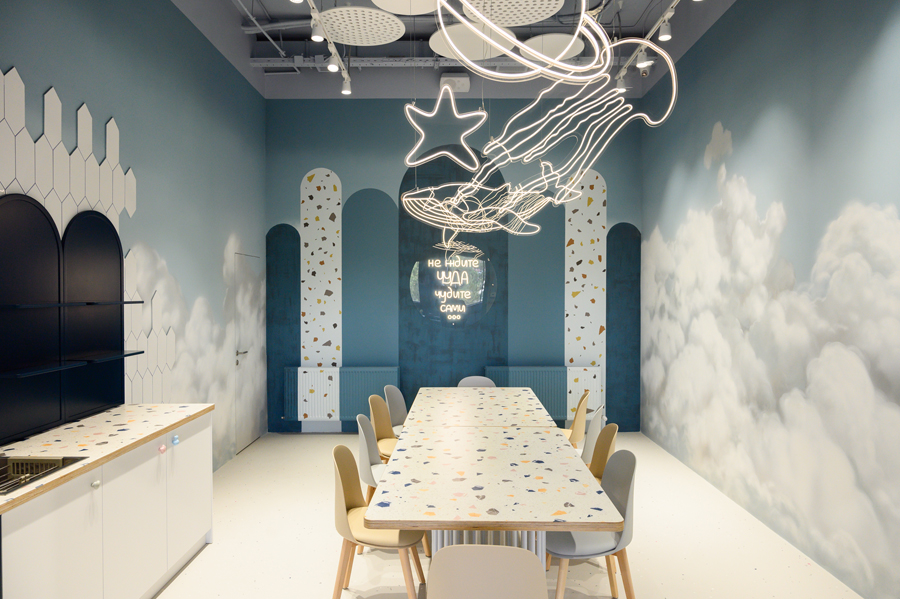 Свет выступает архитектором эмоций: равномерное освещение обеспечивает безопасность, а неоновые облака и декоративные подсветки становятся акцентами и «магнитами» для взгляда. Для меня этот проект не просто тематический интерьер. Это пространство, где каждая деталь неслучайна и где живут эмоции. «КУКА» — ожившая книга, в которой каждый может найти свою страницу».