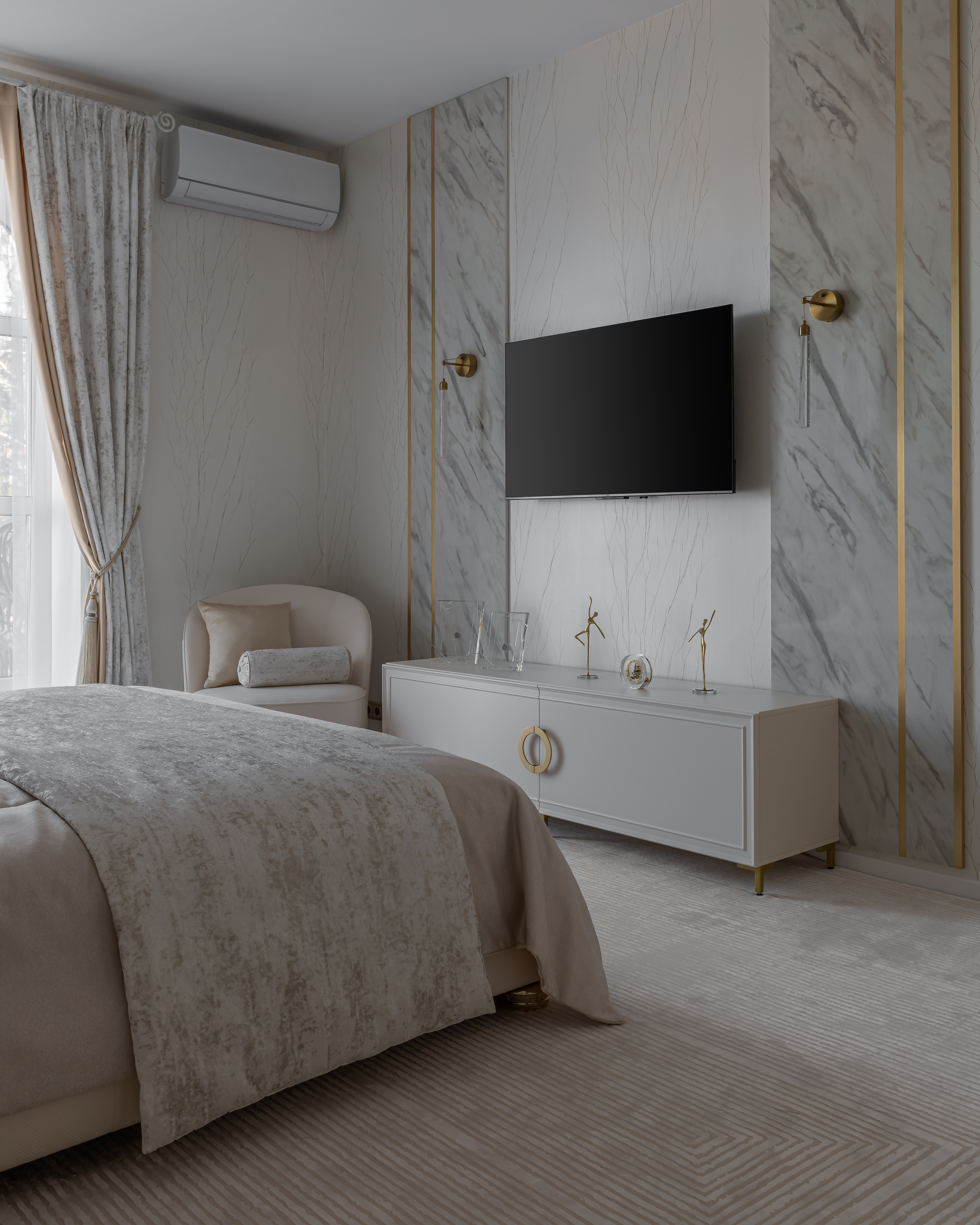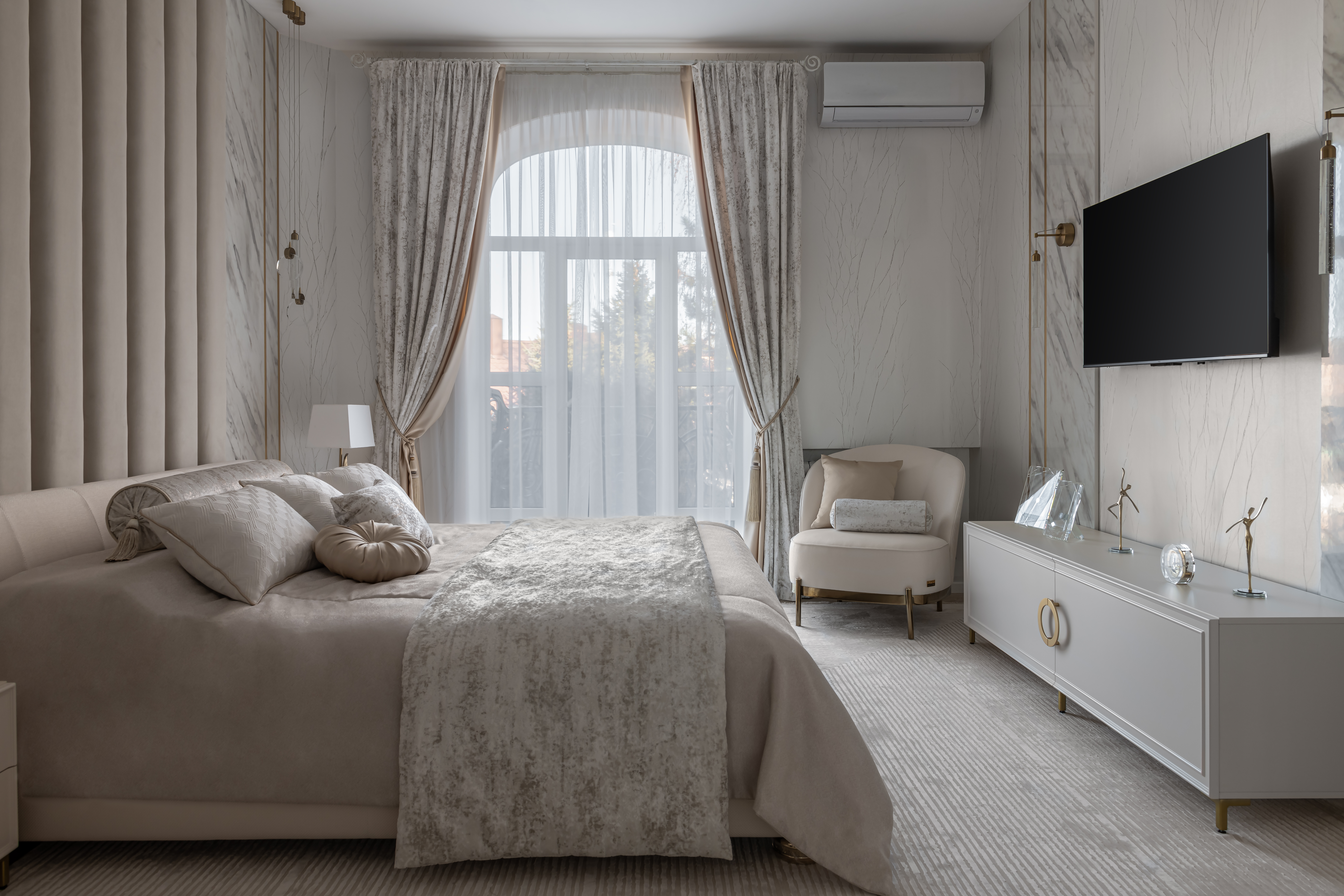 Оксана выбрала для освещения спальни коллекции PLANET и BIAS от ARTE Lamp. Прозрачный хрусталь с необычным бабл-эффектом в сочетании с металлом в цвете латунь идеально подходят для интерьеров в стиле современной классики.